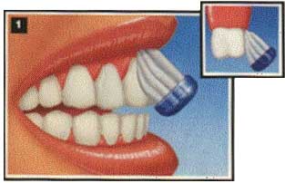 und zwar für die Zahnflächen beider Zähne extra. Heben Sie die ZS nach oben wieder heraus. Anschließend den Unterkiefer auf die gleiche Weise reinigen. Eine sehr gute Hilfe ist der Zahn-